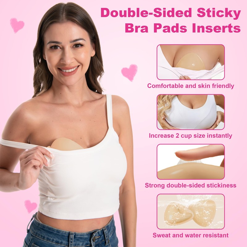 - Instantly Lift & Enhanced Posture: These push up inserts are for putting inside bras provide support. Sticky bra inserts can add up to 2 cup sizes instantly, creating an eye-catching and natural looking cleavage while experiencing glorious push up effect.