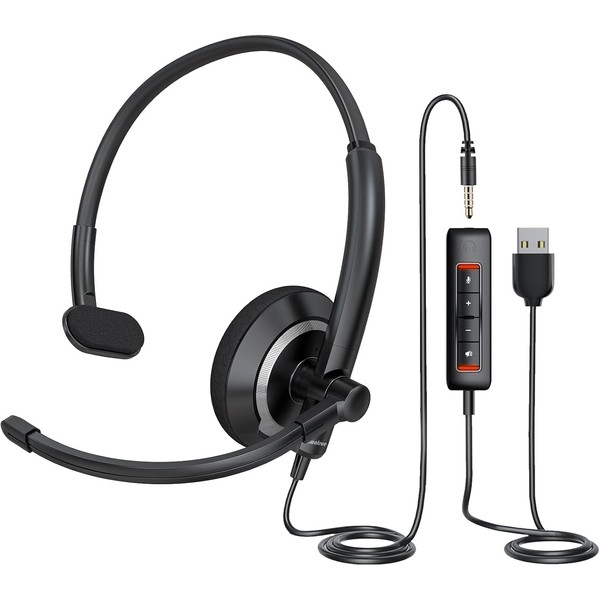 awatrue Wired Computer Headset with Microphone for PC Laptop - USB Headset Noise Cancelling,On Ear Office Call Center Boom Skype Webinars,Mute Control,Lightweight