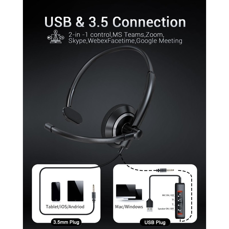- Noise-Canceling Microphone – The flexible boom mic reduces background noise, ensuring professional call clarity for customer service, remote work, and call centers.