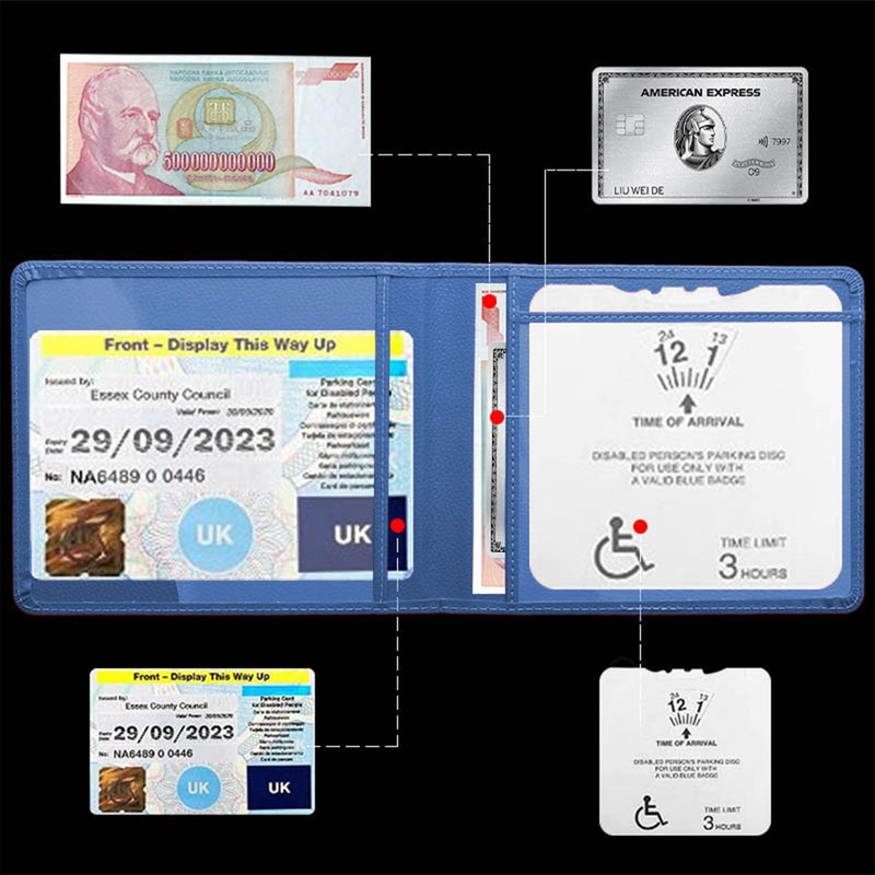 AWAVM Disabled Badge Holder Wallet for Car Blue Badge Soft PU Leather Protector Disability Parking Permit Protective Cover