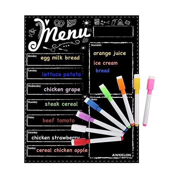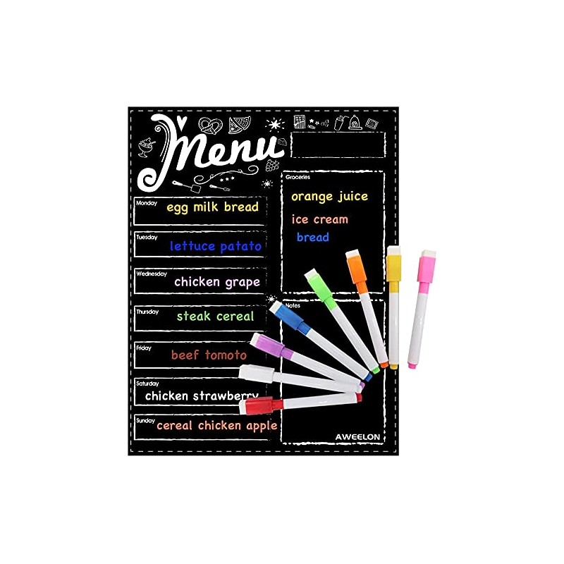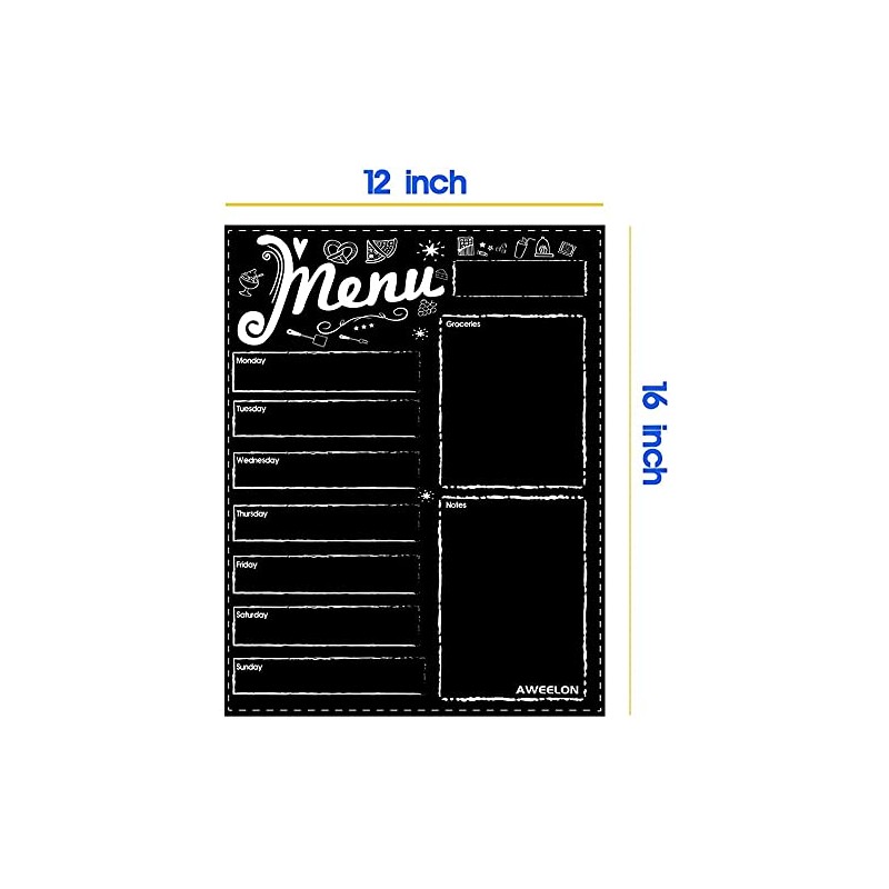 AWEELON Magnetic Dry Erase Menu Board for Fridge Weekly Meal Planner Blackboard 12 X 16 Inch