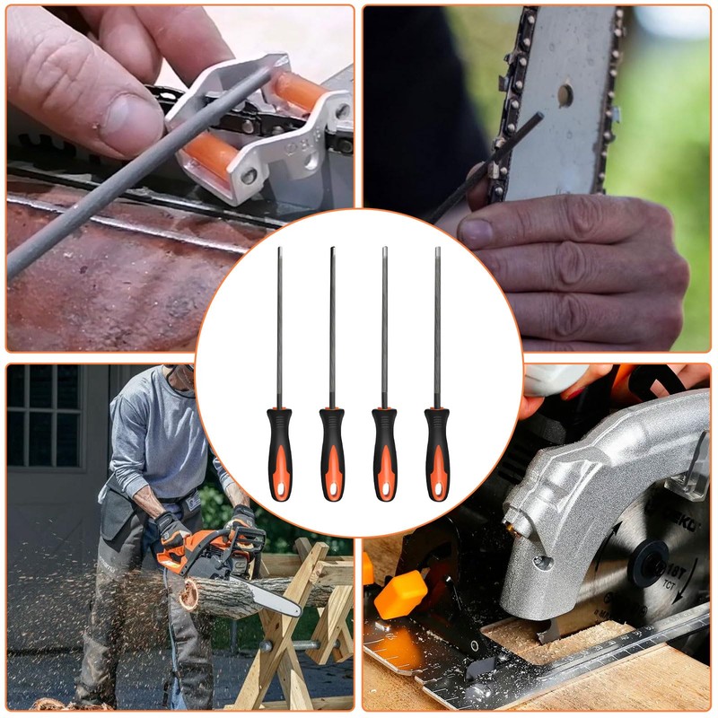 - MULTIPURPOSE The round file is not only suitable for sharpening chainsaws, chainsaws and so on. It can also be used for processing metal, glass and tiles. They are a practical accessory for DIY projects, home, garden and workshop.