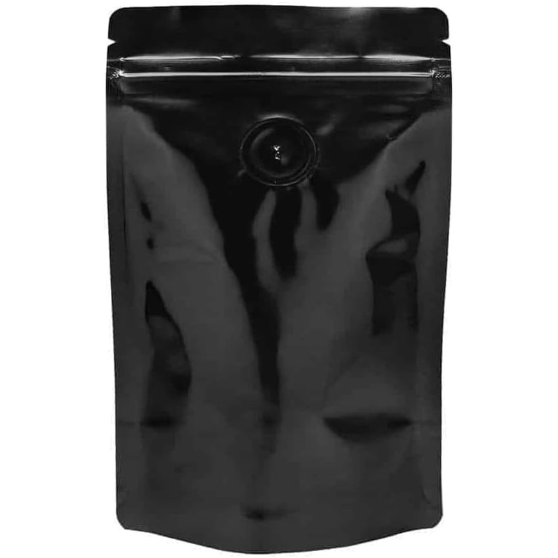 - Clear Front, Glossy Black Rear High Barrier Foil Stand up Zipper Pouch Bag With Degassing Valve