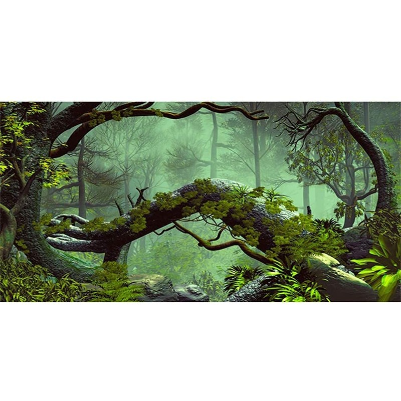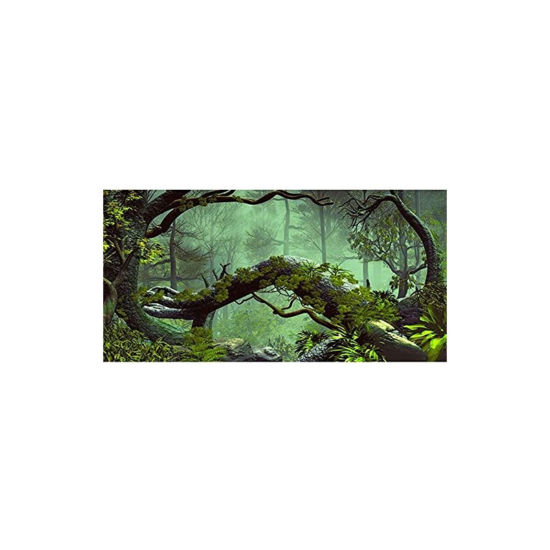 AWERT 72x24 inches Foggy Forest Terrarium Background Stone Green Tree Tropical Reptile Habitat Background Rainforest Aquarium Background Durable Polyester Background