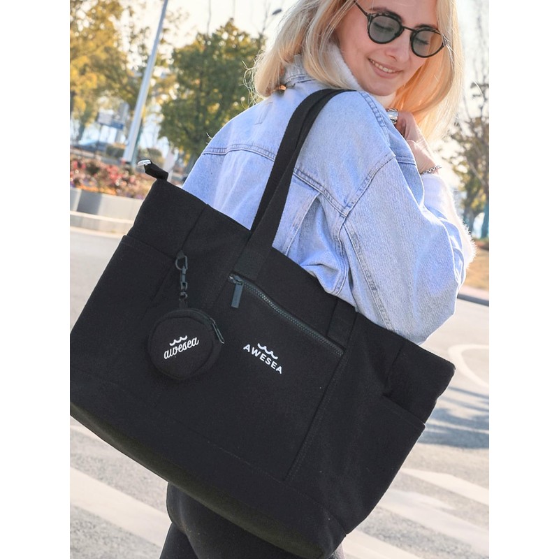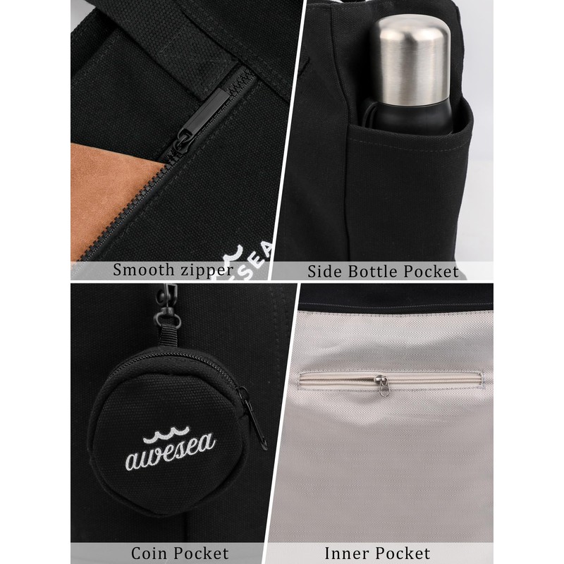 AWESEA Large Canvas Tote Bag for Women - Durable Sturdy Tote bags with interior Pocket and Zipper Perfect for Travel and Daily Use Utility Series- Black