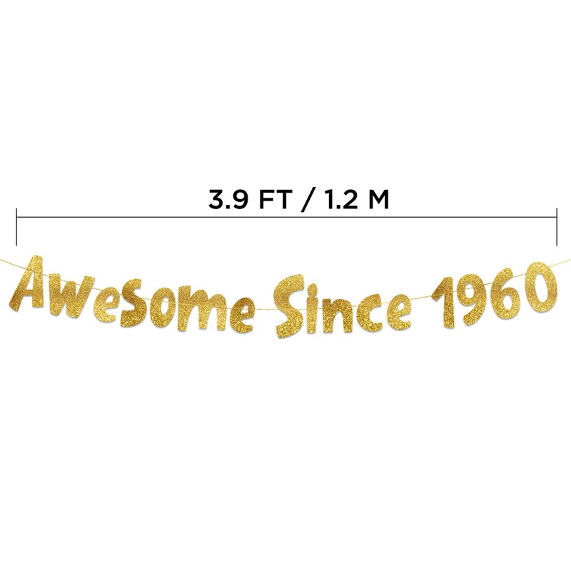 Awesome Since 1960 Gold Glitter Banner - 65th Birthday and Anniversary Party Decorations