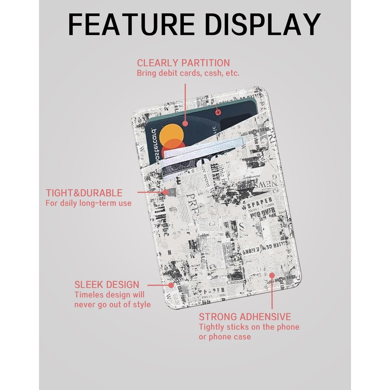 AWHSCP Phone Card Holder, Cute Leather Phone Wallet Stick On, Dual Pocket Credit Card Sticky Wallet, Compatible with Most of Cell Phone Old Newspapeer