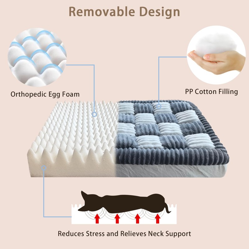 - Egg Crate Foam : Awjcsv orthopedic dog beds are made with egg crate foam to help relieve pressure on the spine, muscles, and joints while the dog rests and relaxes on the pet bed.
