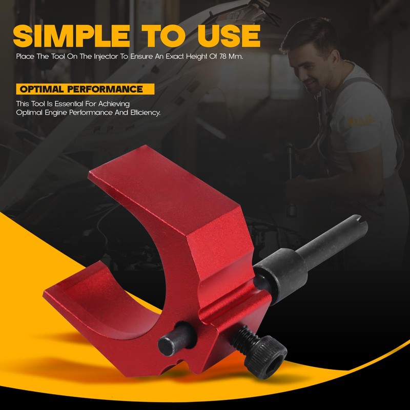 • FUNCTION Injector Height Gauge Tool: it is designed for easy and precise adjustment of injector height in your engine. Simply place the tool on the injector, and it will ensure an exact height of 78 mm. This tool is essential for achieving optimal engine performance and efficiency. Engine Barring Socket: it meshes great with every tooth on the flywheel, perfectly help you save energy to rotate the engine.