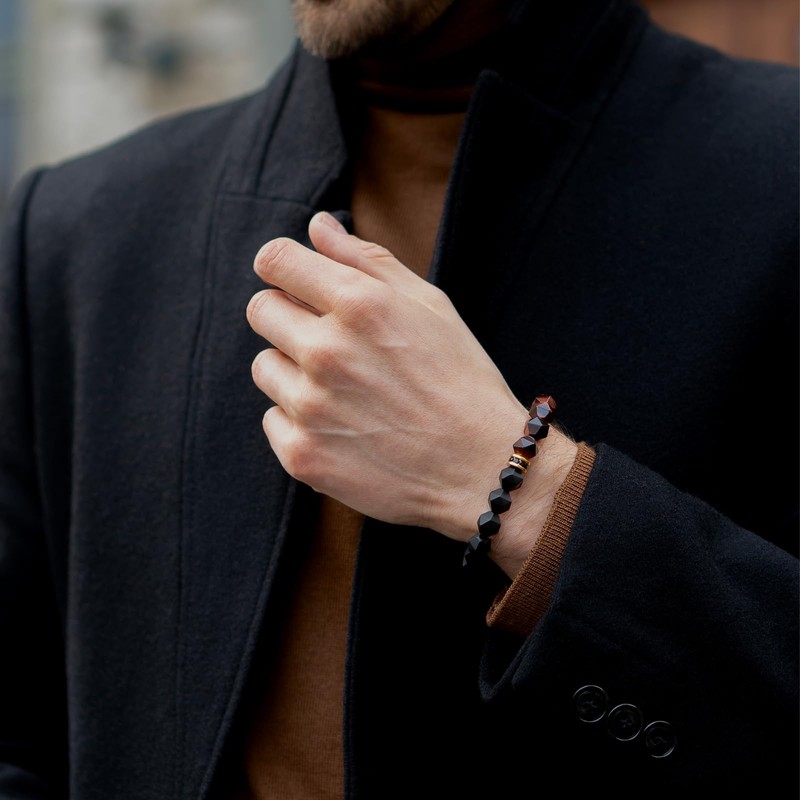 - DESIGNER NOTE - Introducing the timeless Bagabond collection that symbolizes simplicity and style. This bracelet is carefully selected based on its natural beauty and exceptional quality with 10mm black onyx from Brazil and South Africa. Black Onyx cleans negative energy and provides peace of mind. Red Tiger Eye will help you raise ambition and determination, overcome difficulty and power to achieve goals