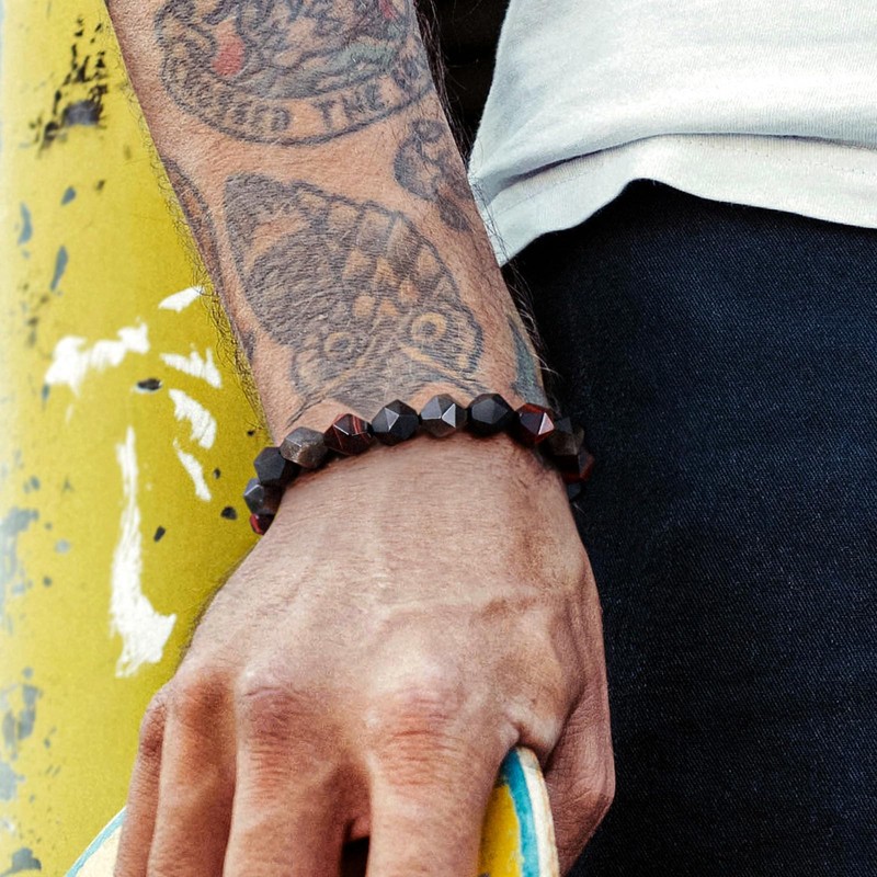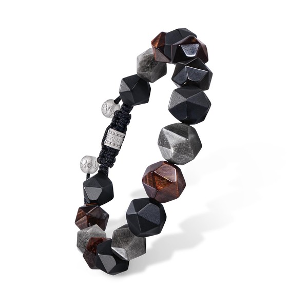 - Designer's Notes - Step into the eternal realm of Norse mythology with our beaded bracelet, an embodiment of timeless elegance and celestial energies. Crafted with star-cut Brazilian silver obsidian, black onyx, and South African red tiger's eye, this bracelet weaves together the essence of the cosmos and earthly elements. The drawstring design ensures a perfect fit, allowing you to adorn yourself with the mystical energies of these stones.