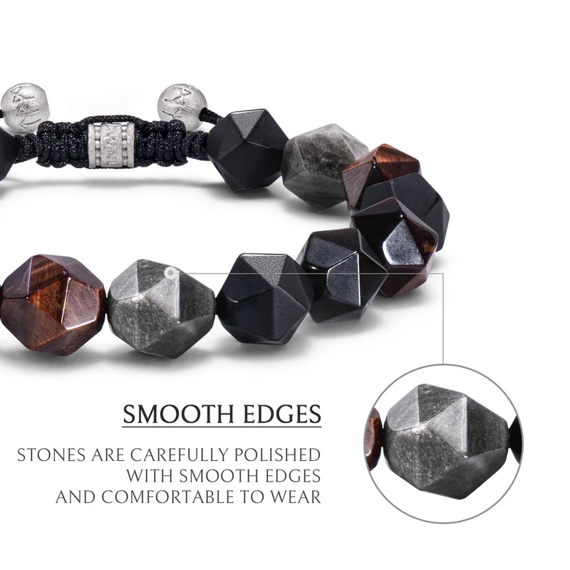 - Spiritual Significance - Silver obsidian is believed to aid in personal transformation and navigating through life changes. Black onyx is a popular protective stone that is often used to absorb negative energy and promote emotional and physical strength. Red tiger's eye stone stimulates ambition, drive, and determination, helping individuals overcome challenges and achieve their goals with enthusiasm.
