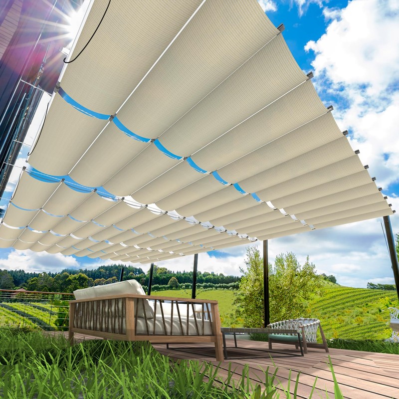 - ✅[NEW DESIGN]: Featuring a unique U-shaped design, the shade can be easily pulled back when you don't need it. We've also equipped it with control tape that you can use to determine the distance between sections and close it when not in use. This retractable awning allows you to extend or contract it depending on your need for sun or shade. The freedom to adjust the shade space is perfect for your pergola, patio, backyard and more.