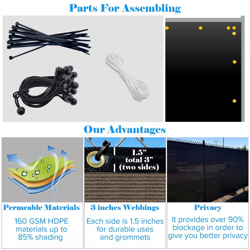 - 【High Quality】:We use the quality materials, our garden privacy fence is made of 160 GSM knitted premium polyethylene material, which provides 90% Covering the sun's rays and 90% visibility Covering. The fabric has a 3-inch black reinforcement layer so it can withstand even extreme weather conditions and stand the test of time.