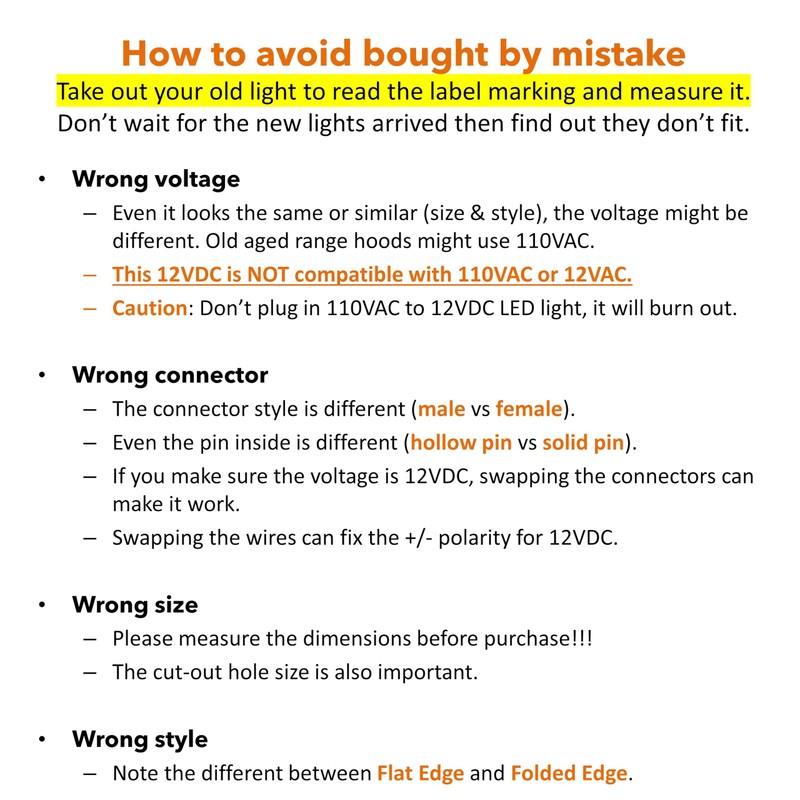 - [Exclusive 12V DC Compatibility]: Engineered specifically for use with 12V DC power sources, ensuring safe and efficient performance in range hoods designed for a 12V DC system (not for 12VAC or 120VAC voltage). Ideal for those seeking range-hood light bulbs with LED technology.
