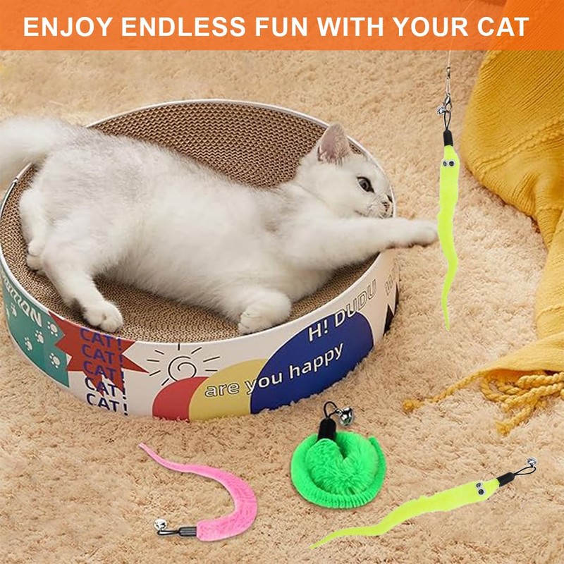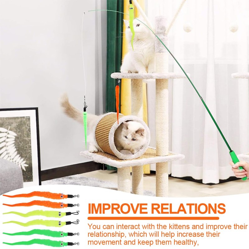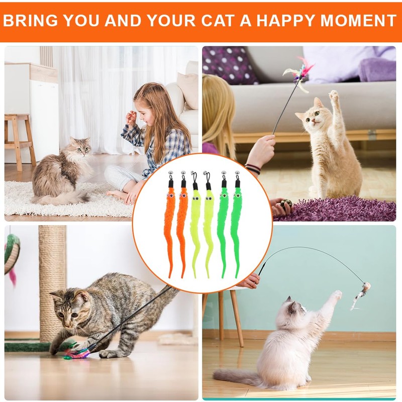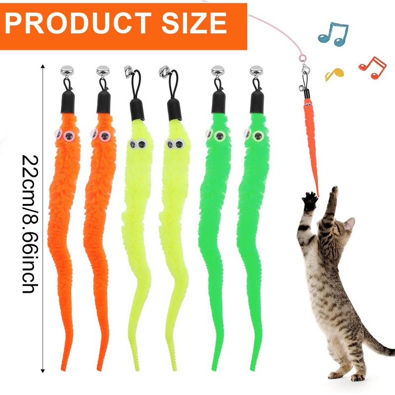 AWOGIPD Cat Toy Worms, 6 Pieces Cat Toy, Toy Replacement with Bell, Interactive Cat Toy, Refill Attachment for Kitten Training