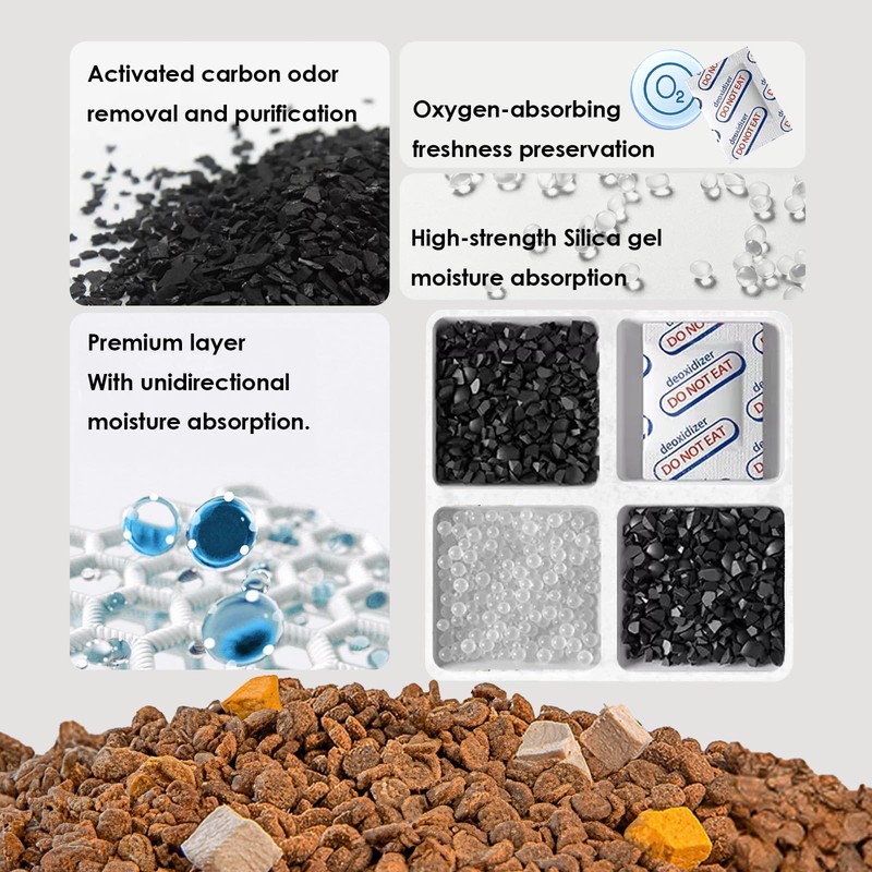 - PEACE OF MIND MATERIALS: Made from food-grade materials, including sterile non-woven fabric, silica gel, deoxidizer, and activated carbon, these desiccant packs ensure freshness and prevent damage and ingestion by pets