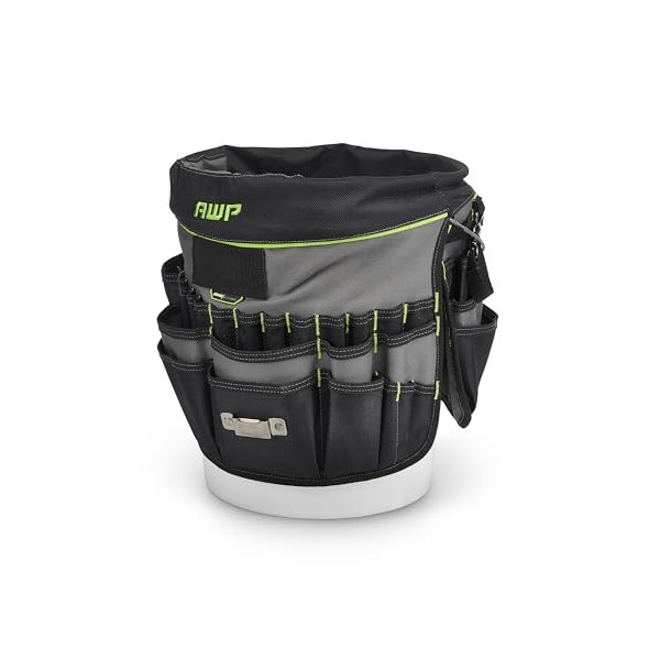 Keep your tools, hardware, and equipment always within arm's reach with AWP tool rigs, tool belts, and pouches. This 51-Pocket Bucket Tool Organizer is perfect for storing tools and equipment and for those who need to bring the shop to the jobsite. Designed with ample storage space, inside and out, our heavy-duty 5-gallon bucket organizer holds all your smaller handheld and power tools. Simplify your work by keeping your tools and gear organized and within hands' reach. At AWP, we're committed to crafting innovative and unique products that keep your tools organized and your fasteners secure. Crafted with only high-quality, durable materials and engineered to perform, our rigs, utility belts, suspenders, and clip-on pouches are made to last years of tough usage.