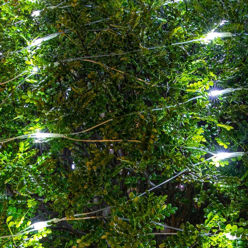 - High Quality: 200 LED 9.8ft x 6.6ft net mesh lights with solid construction plastic material, adapter powered. 30V low voltage string lights with UL 588 certified for safety use. Power line: 16.4ft. light string: 9.8ft x 6.6ft, length totally: 26.2ft approx.