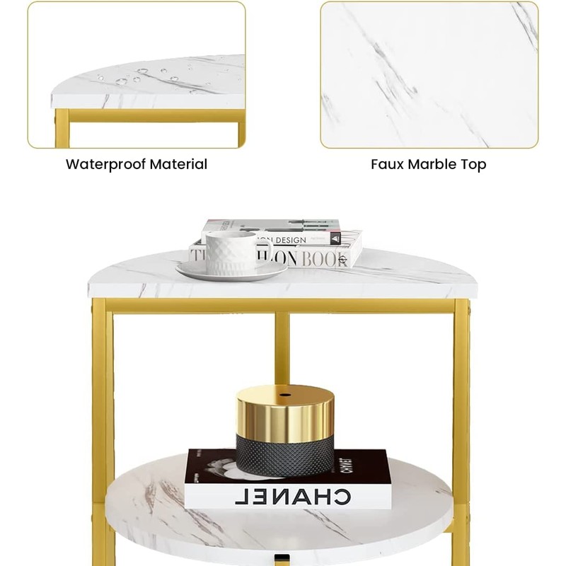 - ☕【MODERN SIDE TABLE】- This posh piece's metal frame is finished in golden polished chrome for a look,table top is made of MDF and finished with a beautiful glossy white faux marble with gray veining, bringing the look and feel together,adding a nice touch to your home