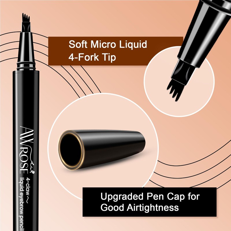 • 【Unique 4-Pronged Tip Design】The AWROSE brow pen's revolutionary sponge brush creates 4 ultra-fine hair strokes at once – just like microblading! Its flexible prongs effortlessly mimic natural brow hairs, giving you feathery definition without harsh lines. Forget clunky old brow pencils!