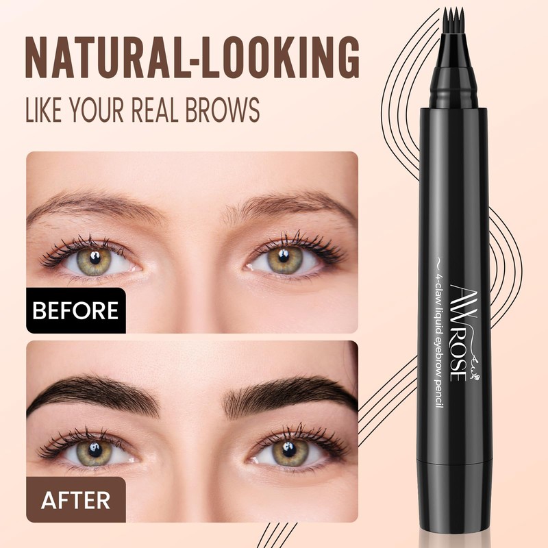 - 【Unique 4-pronged Tip Design】AWROSE natural brows eyebrow pen features an innovative four-pronged soft sponge tip that mimics feathery brow texture. It creates 4 micro-fine, hair-like lines in a single stroke that seamlessly blend with your natural brows, delivering supernatural results instantly. Say goodbye to old-fashioned brow filling!