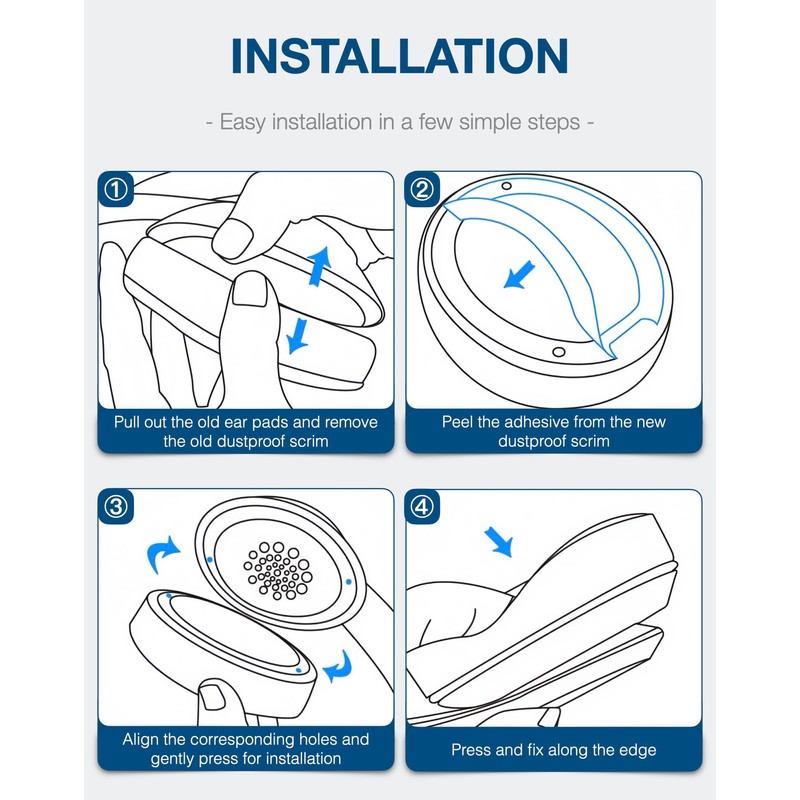 - Easy to install: Remove the old one (Just a little bit of force is needed), then take a new ear pad, align the buckle with the corresponding hole, and press to complete the installation.