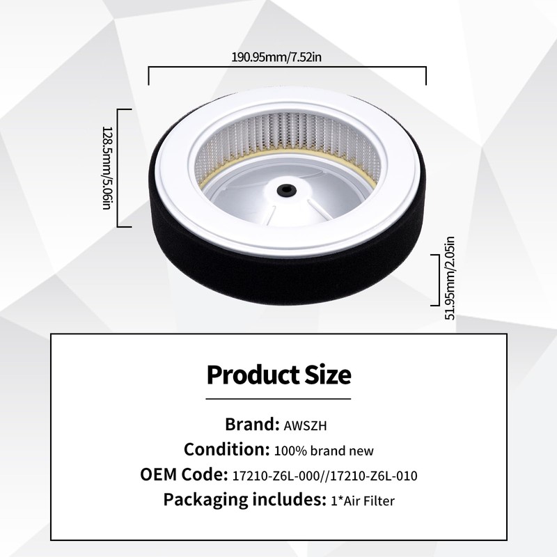 • AWSZH 17210-Z6L-010 Excellent air filter with reliable protection designed for smooth operation. The sturdy frame ensures surface openings for maximum air flow at all times. Powerful, improved fuel consumption