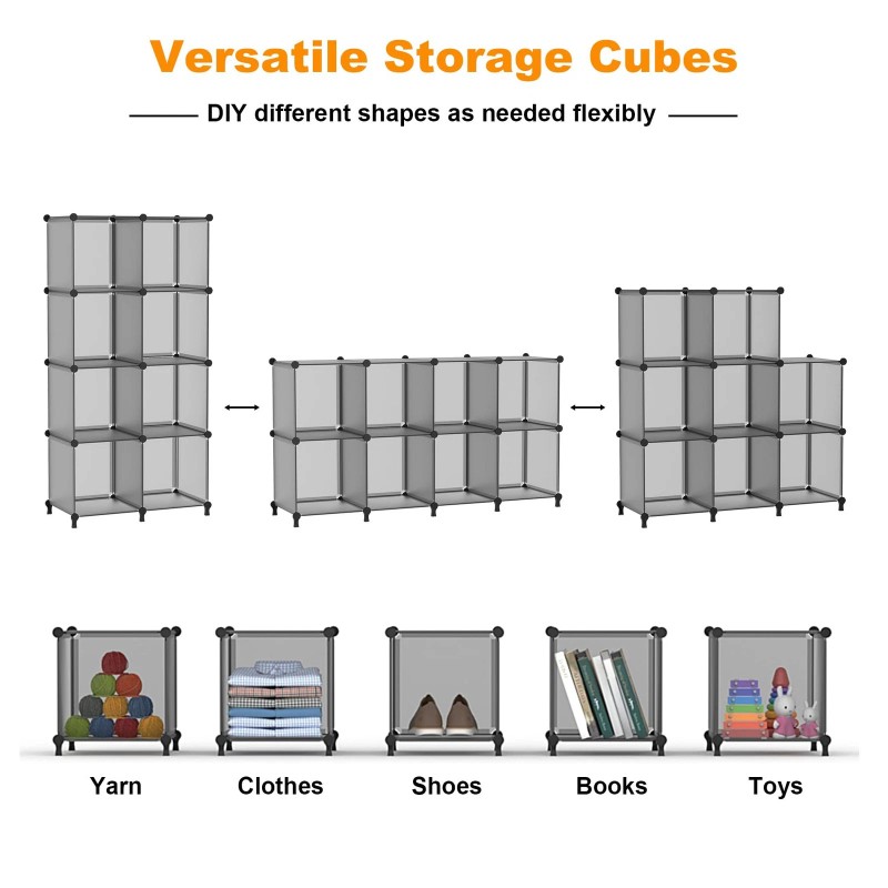 Multi-use Storage: 8 cube closet Organizer storage shelf provide adequate space to organize and free up closet space, you can configure them to fit in your closet, bedroom, kids room, office; works well to organize clothes, toys, books, bins, bag, shoes, craftwork, yarn, pillows. Great way to keep things organized