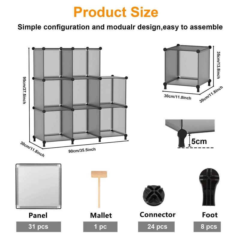 High Stability: Whether panel of each cube get well locked decides if you can get a sturdy closet organizer. Our ABS connector inside is multilayer lock design. For highest stability, you need to lock the panel in deepest layer so that it won’t easily slides out