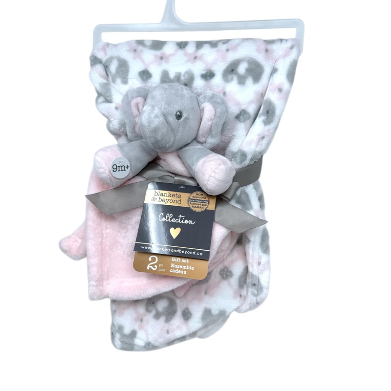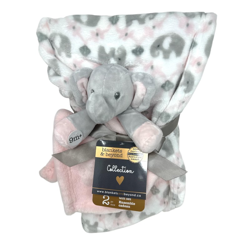 AWW GIFFTS Blankets and Beyond Baby Plush Elephant Security Blanket Pink White Grey Nunu 2-PC Lattice Set