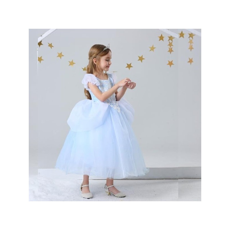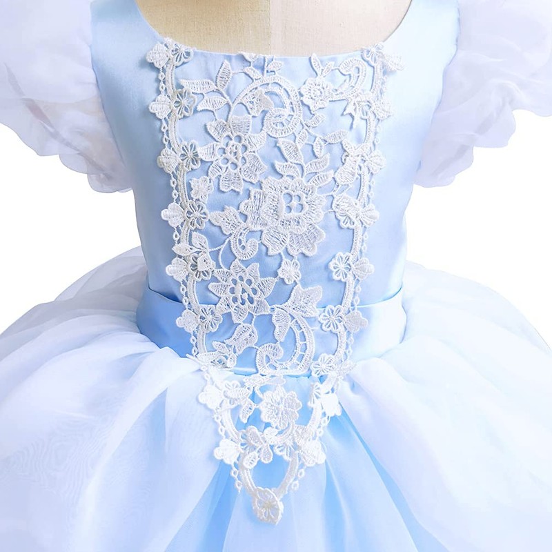 - 3. 🌸This is a Cinderella dress costume. The body is made of stretchy soft material for your child's comfort. Protect your child's body. Elastic waist with no zipper on the wear,comfortable to wear with children. The skirt is unlined satin fabric, but it has a smooth and soft finish. The tulle hem creates a luxurious spread through the segs that will captivate anyone who sees the elegance of each swing. The skirt is made with 6 layers so it is comfortable to wear without see-through. .