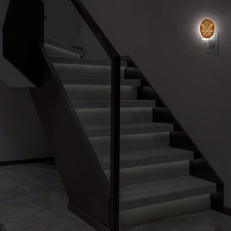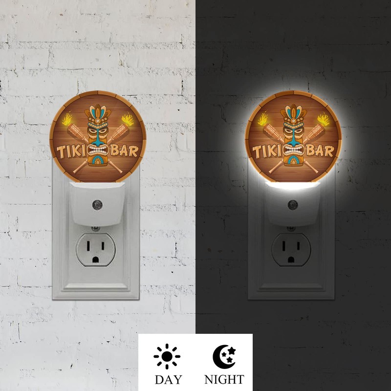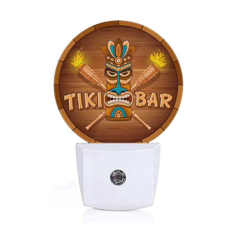 Axayaz Tribal Night Light Plug Into Wall Word Tiki Bar Wooden Bamboo Torch Circle Brown Auto Sensor LED Dusk to Dawn Light for Bedroom Staircase