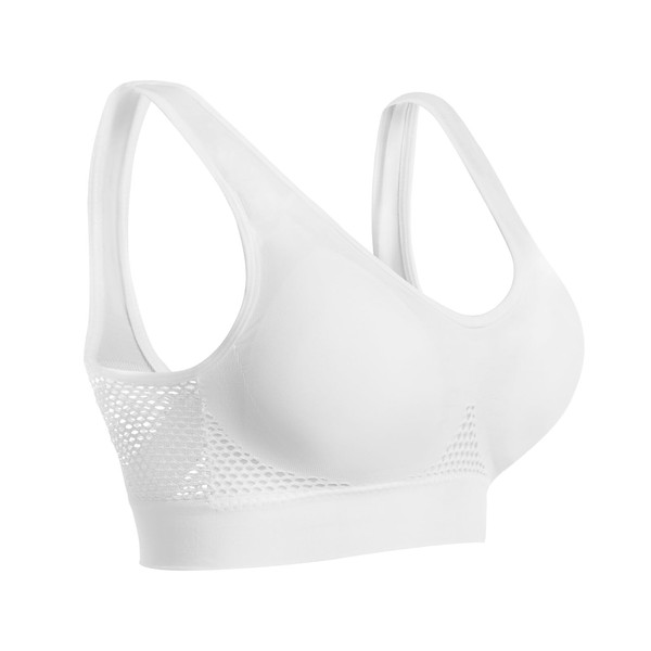 axbeeax Women's Sports Bras with Removable Pads and Breathable Mesh Design High Impact Support Bra Seamless Bra for Women Large Breasts White
