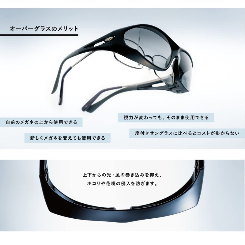 - Sporty 3D goggle style, prevents UV rays and pollen from the sides and top that ordinary sunglasses can't be protected Compared to other overglasses, it has a much wider and comfortable field of vision, and the "polarized lenses not too dark" match the Japanese black eyes, making it look bright and clear