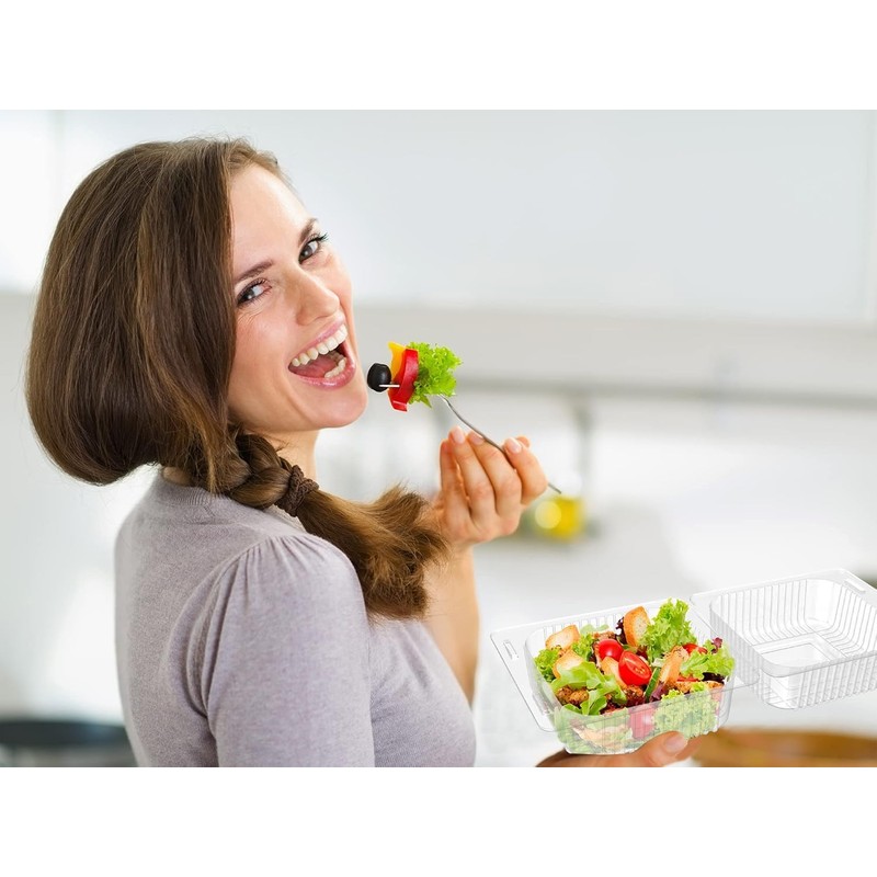 - Functional and Practical to Use: these clear plastic clamshell takeout trays are designed with hinged lock for seal, When you hear the snap,you will know that the take out container is tightly closed.