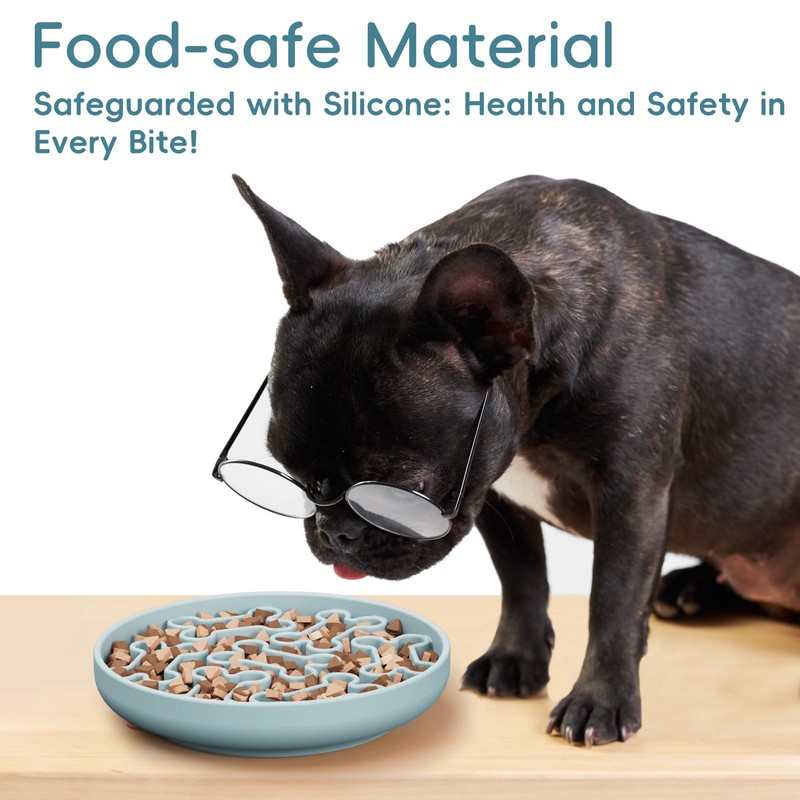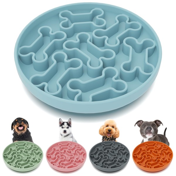 AXEFUN Silicone Slow Feeder Dog Bowl – Sky Blue Bone Pattern | Food-Grade Non-Slip Dog Dish for Anti-Bloat, Fast Eating Prevention, 7.4” x 1.5”, Dishwasher Safe