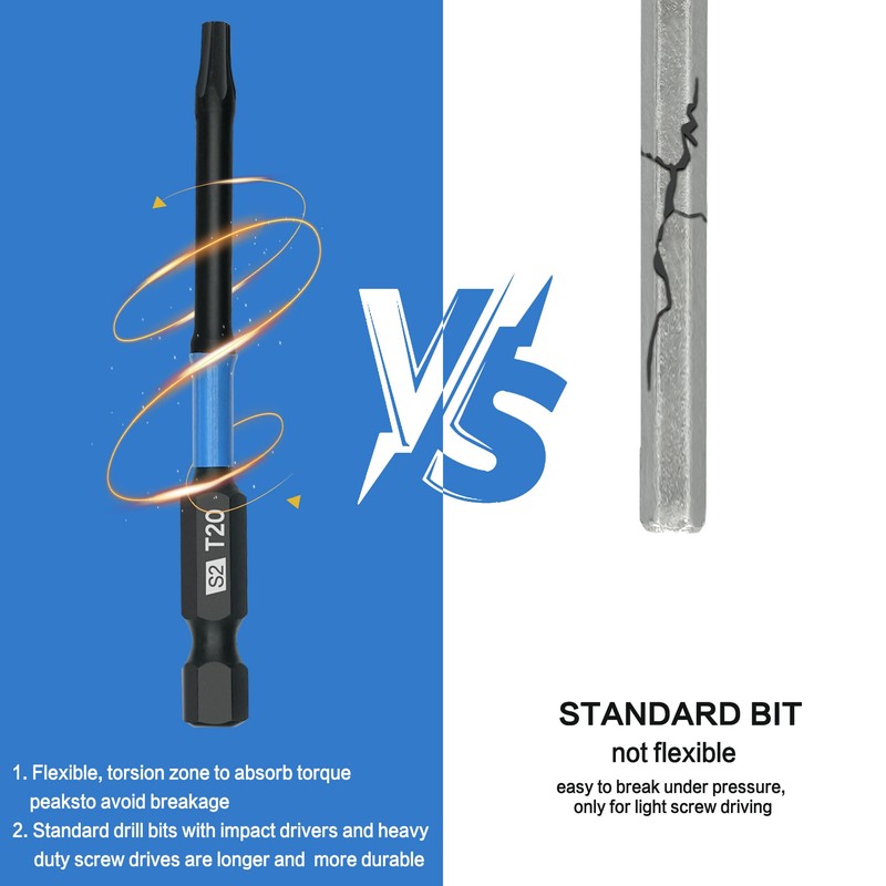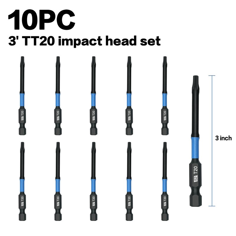 - 【Common Specification Sets】10 Pcs Torx Bit TT20 3inch Torsion zone to absorb torque peaks to avoid breakage. 10 times life expectancy versus standard bits. For impact driver, drill and screwdriver.