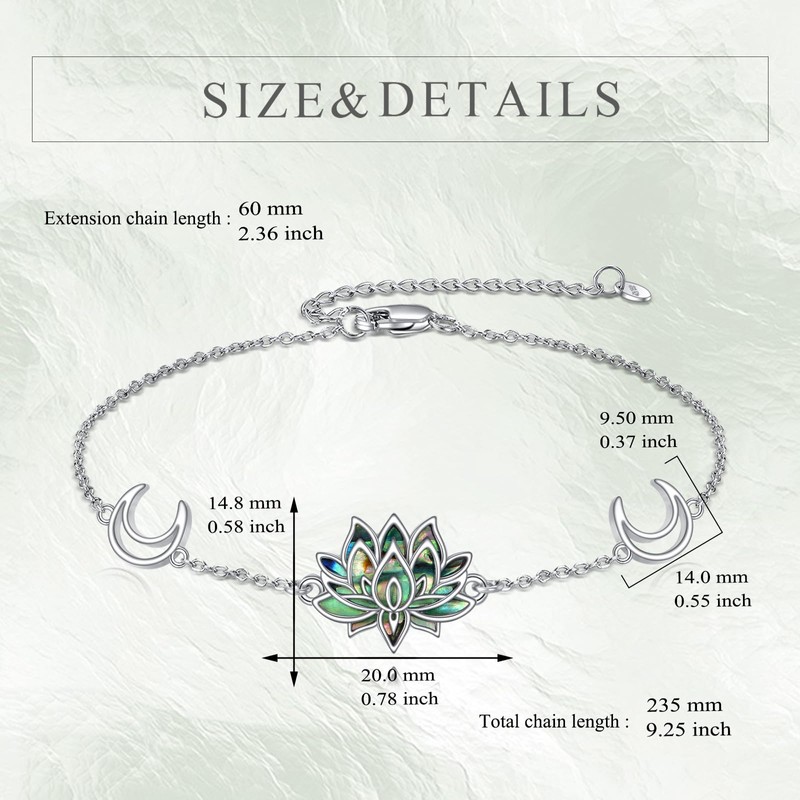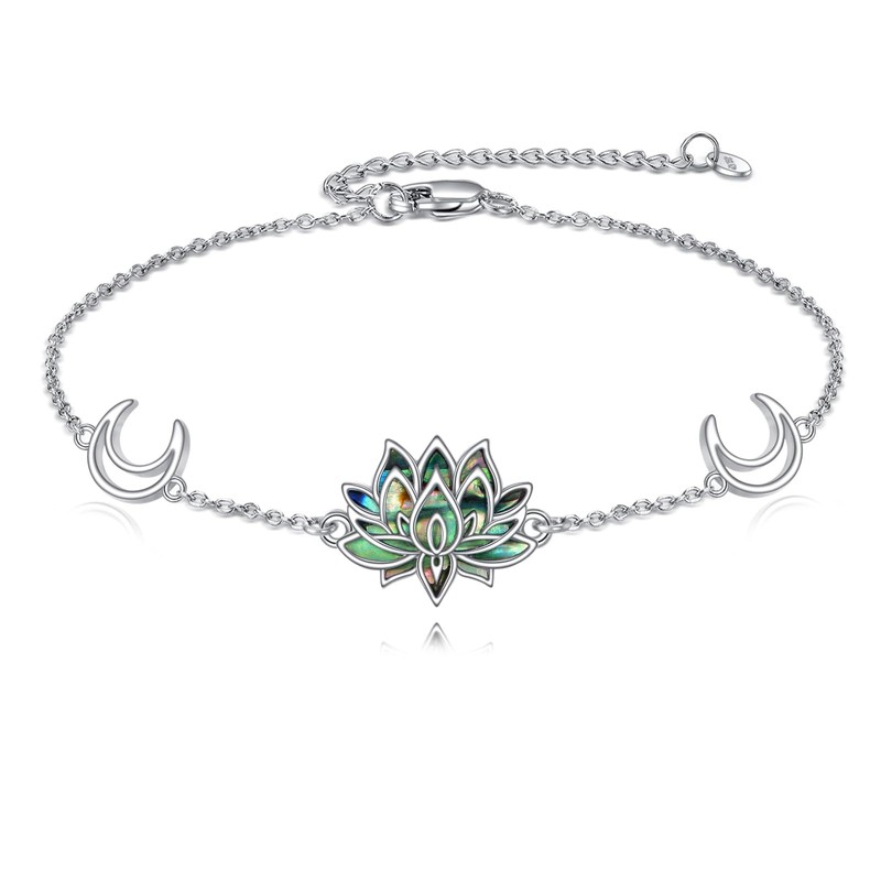 AXELUNA Lotus Bracelet 925 Sterling Silver Lotus Flower Bracelet Abalone Shell Lotus and Moon Lotus Jewellery for Women Mother Wife, One size, Sterling Silver, No Gemstone
