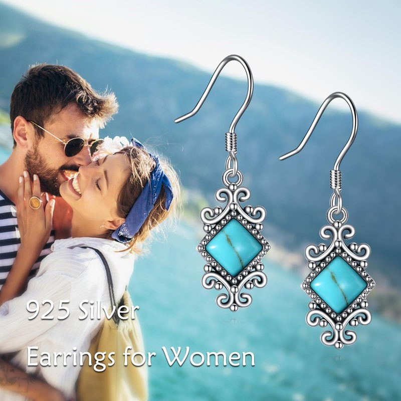 AXELUNA Turquoise Earrings 925 Sterling Silver Square Turquoise Drop Earrings Boho Earrings Western Turquoise Jewelry for Women
