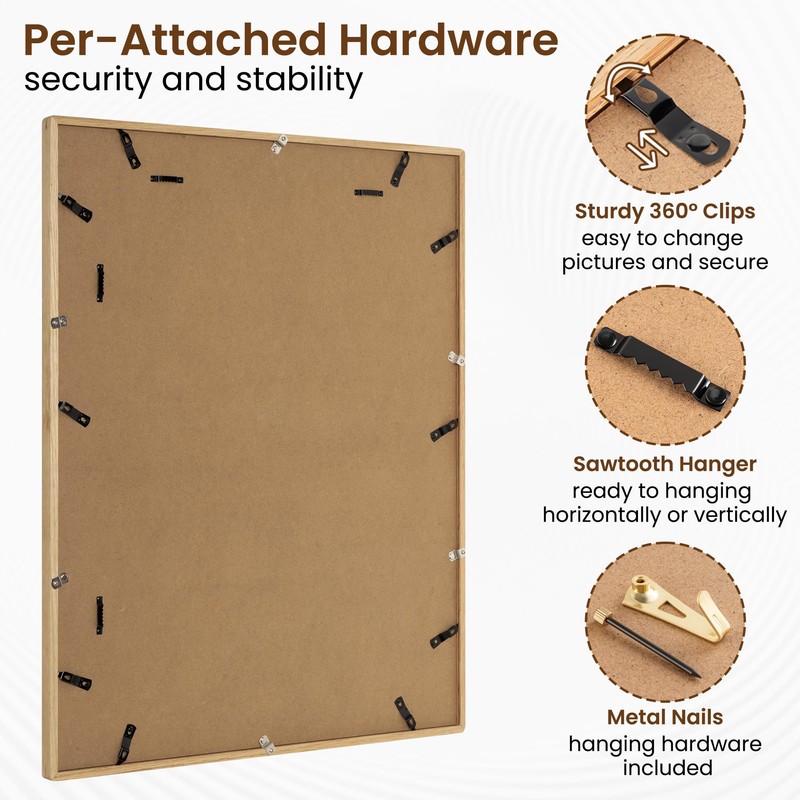- Versatile Display Options: Equipped with pre-installed hanging hardware for versatile use, allowing horizontal or vertical display on walls or against a wall. Perfect for showcasing family photos, artwork, certificates, or precious moments.