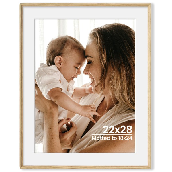 Axeman 22x28 Natural Solid Oak Wood Picture Frame with 18x24 Mat, Premium Rustic Wooden Photo Frames with Tempered Glass, Poster Photo Frame for Gallery Wall Hanging Vertically or Horizontally