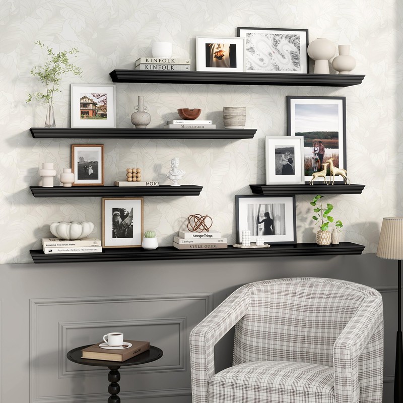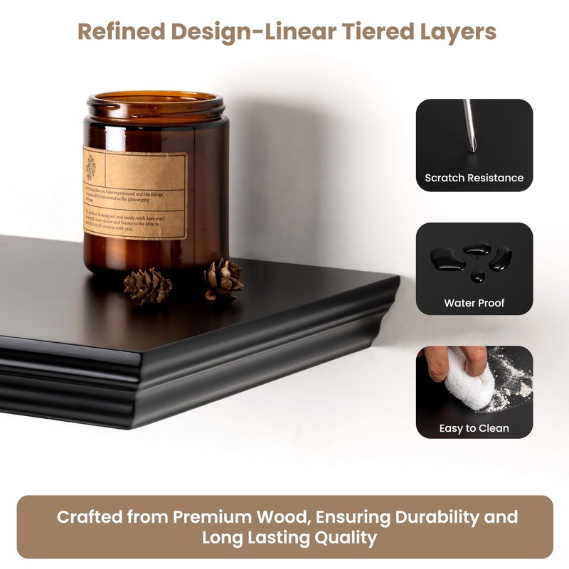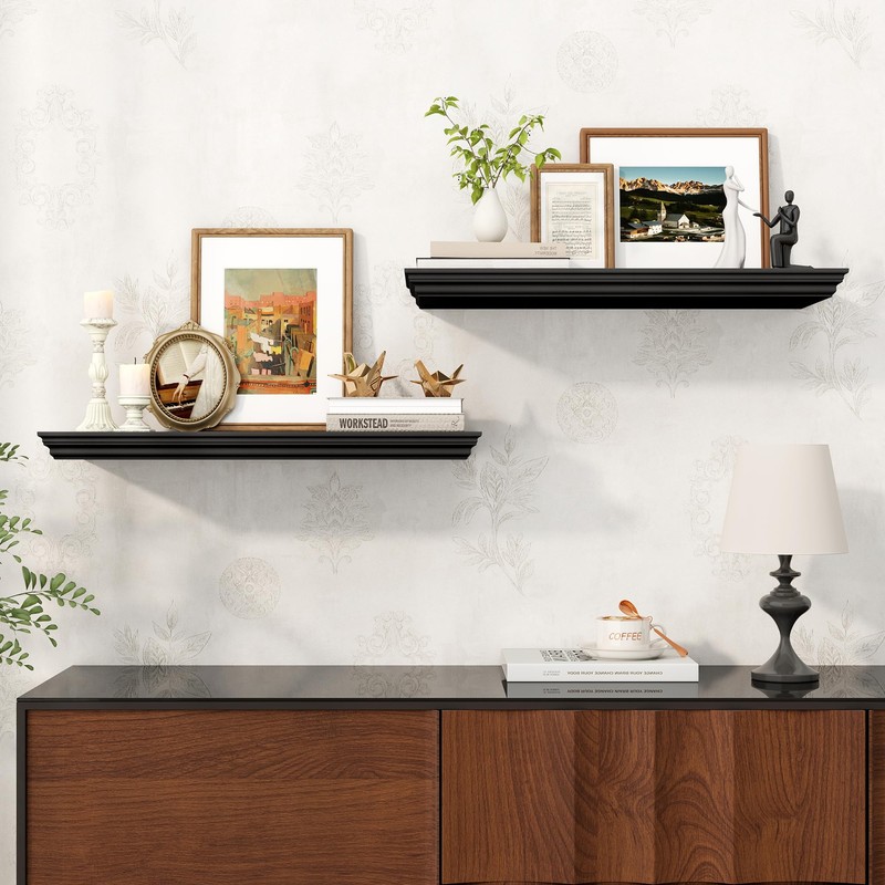 - Classic Crown Molding Design: Showcasing refined crown molding details, this floating shelf brings timeless architectural charm and a touch of sophistication to any room. The elegant profile draws inspiration from traditional trim work, making it a perfect match for classic, farmhouse, coastal, or transitional décor
