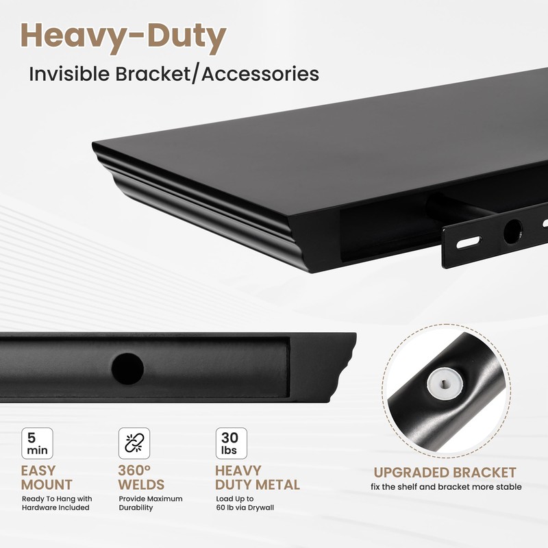 - Strong & Seamless Installation: Equipped with heavy-duty invisible brackets for a secure, floating appearance. Supports substantial weight while maintaining a clean, hardware-free look. The installation is quick and simple, and all necessary components are included. You can easily mount these shelve within 10 minuses