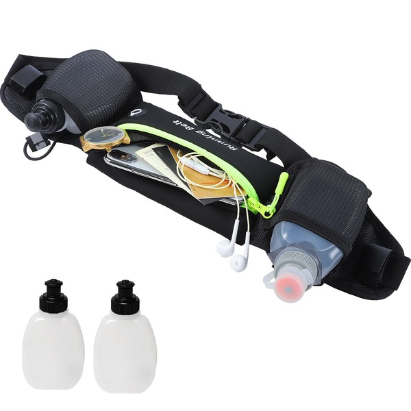 AXEN Running Hydration Belt - Adjustable Waist Pack for Marathon, Triathlon & Hiking | Reflective Safety Design & Phone Pocket, Come with Bottles