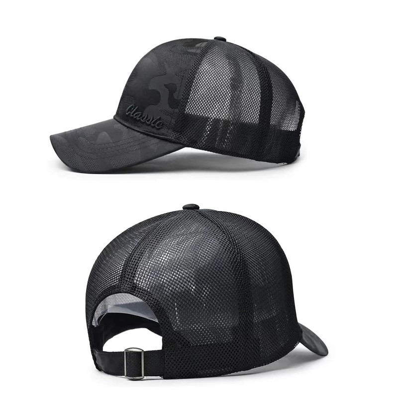 AXIAO Mesh Cap, Men's, Large Size, Camouflage, Baseball Cap, Lightweight, Quick Drying, UV Protection, Sun Protection, Summer, Unisex, Black