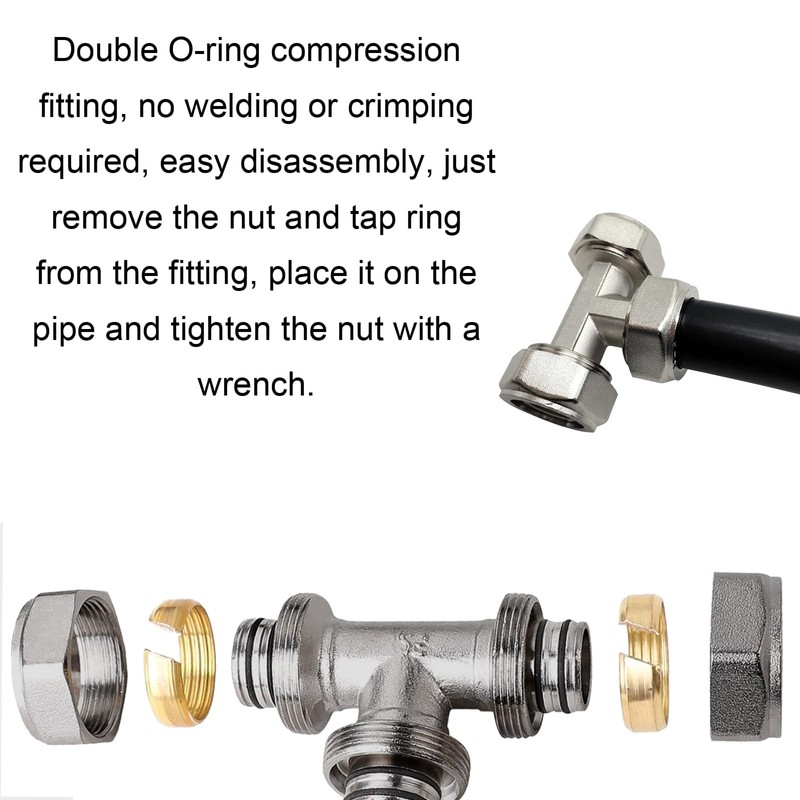 Material: The Tee and elbow air fittings are crafted from nickel-plated brass, ensuring durability and resistance to corrosion.