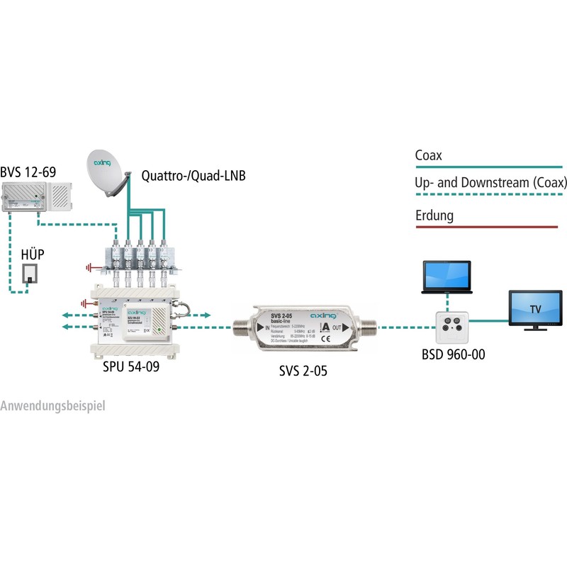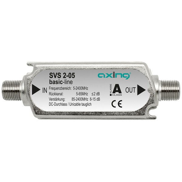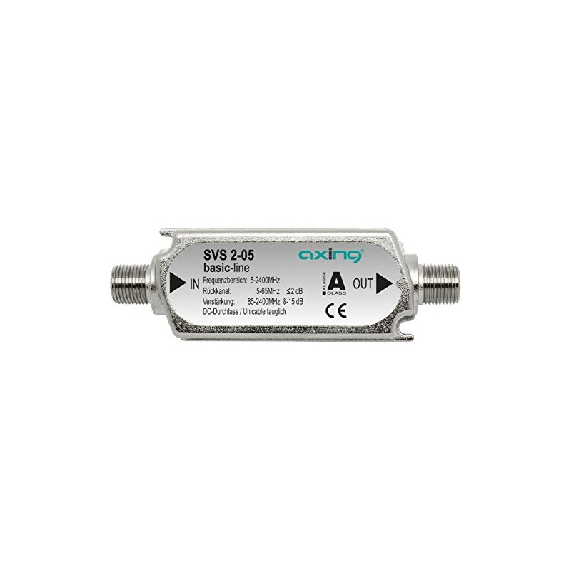 Axing SVS 2-05 Broadband Inline Amplifier 15 dB Satellite and Terrestrial with Return Path (5-2400 MHz)