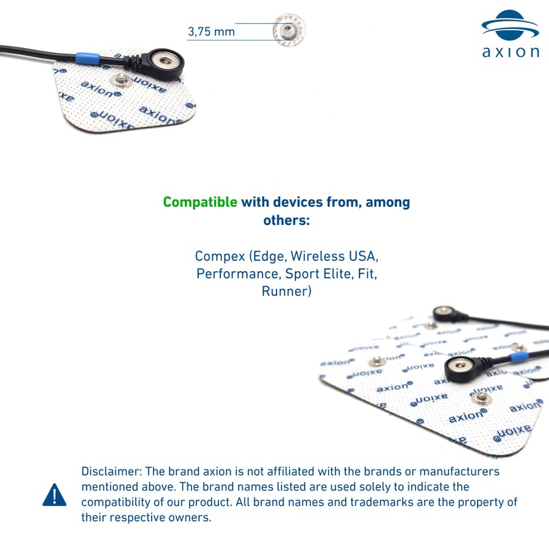axion axion Set of 16 TENS Unit Electrode Pads- 8 Pcs 2x2" & Pcs 8 4x2" Pads - Compatible with Compex Muscle Stimulators and TENS Machines - with 3.75 mm Snap Button
