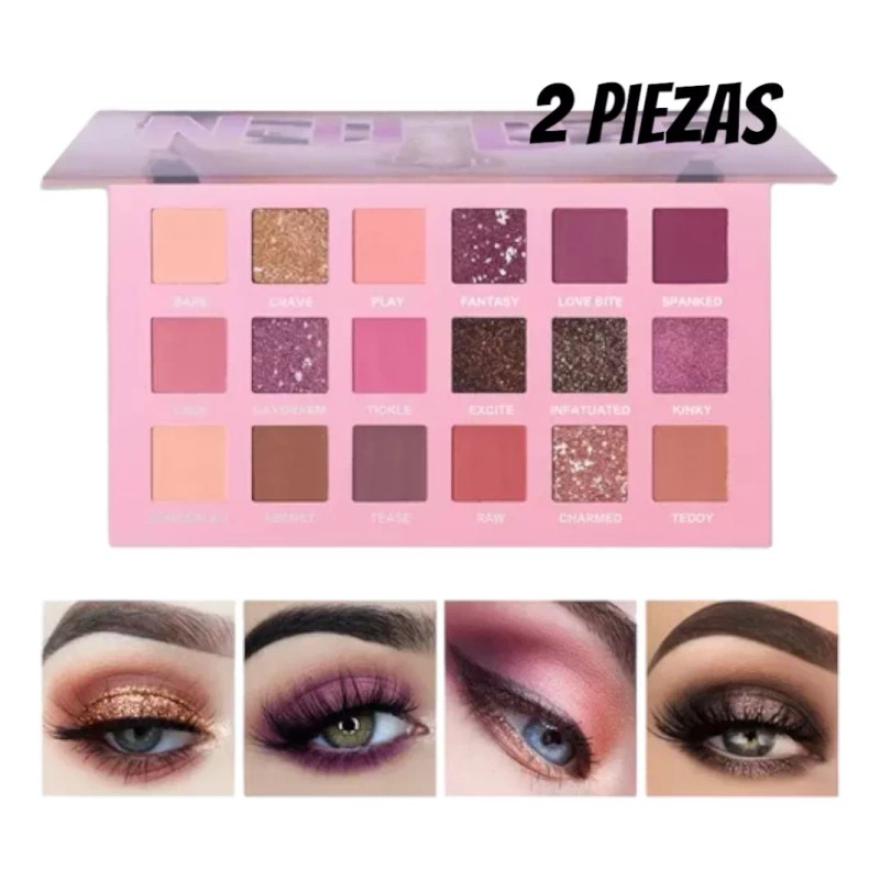 Paleta de brillo mate con 18 colores , ademas cuenta con polvo mineral que es resistente a lluvia, agua etc, y de larga duración .